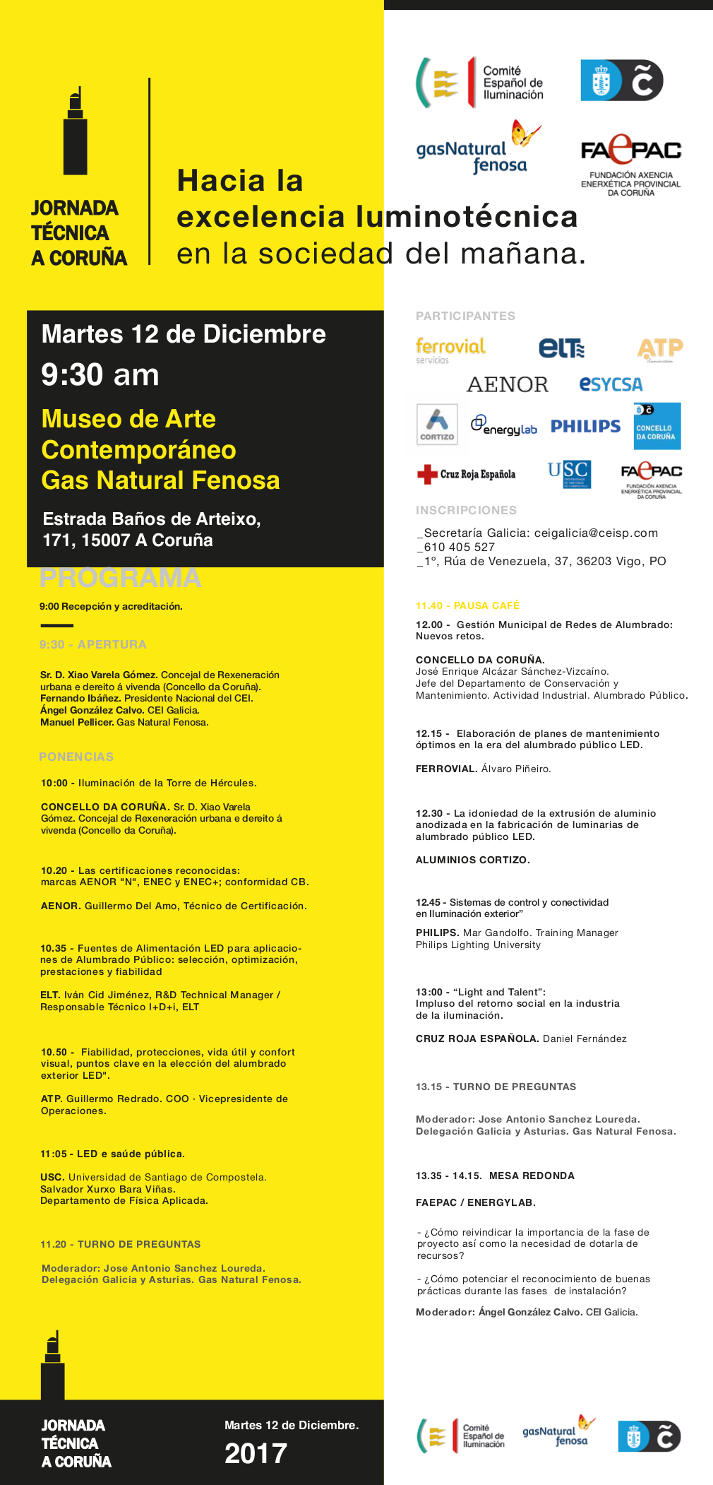 O vindeiro martes 12 de decembro, FAEPAC participa nas xornadas técnicas sobre iluminación que organiza o Comité Español da Iluminación.